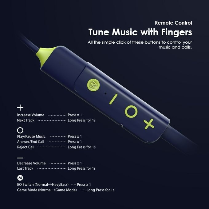 - HavyBass™ Dual EQ: Short press the Mode button “M” once to switch between Normal Mode and HavyBass™ Mode.